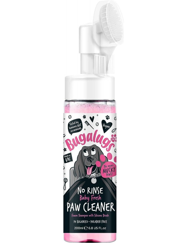 Το Bugalugs Paw Cleaner Foam Shampoo Baby Fresh (Σαμπουάν Αφρού Καθαρισμού Πατούσων “Baby Fresh” Bugalugs) είναι ένα καινοτόμο προϊόν ξηρού καθαρισμού, σχεδιασμένο ειδικά για γρήγορη και αποτελεσματική καθαριότητα των πατούσωνσκύλων και γατών, χωρίς να απαιτείται ξέπλυμα με νερό.