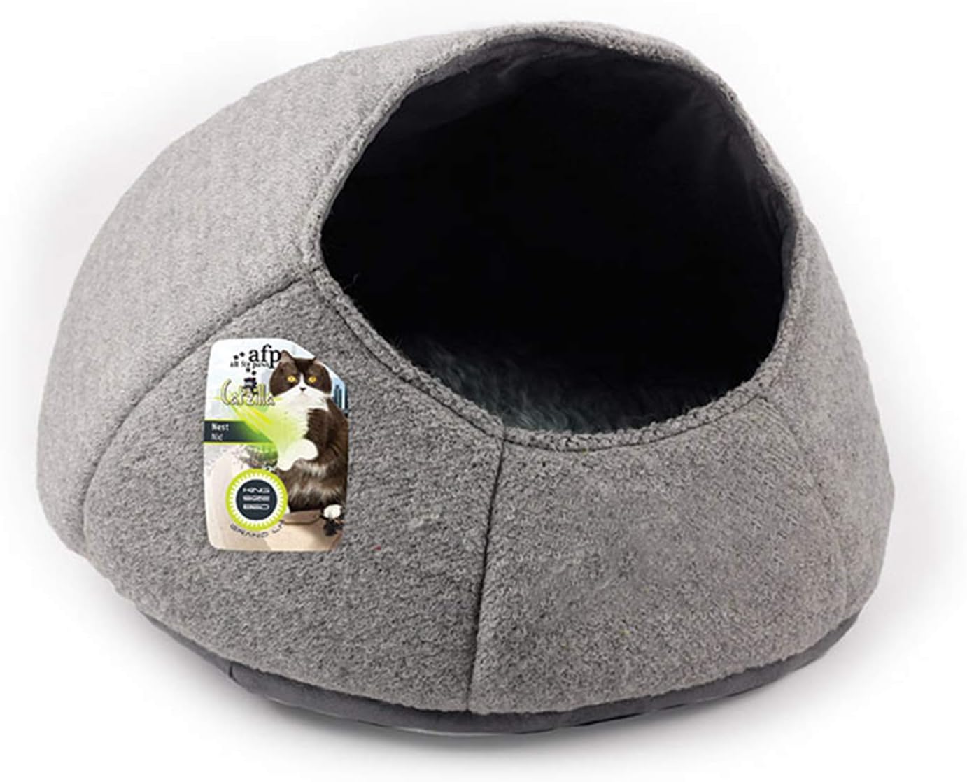 - Σχεδιασμός: Έχει σχήμα φωλιάς (nest shape) με υπερυψωμένα τοιχώματα, τα οποία προσφέρουν αίσθηση ασφάλειας και ζεστασιάς στη γάτα, ικανοποιώντας την ανάγκη της να κουλουριάζεται σε κλειστούς χώρους.