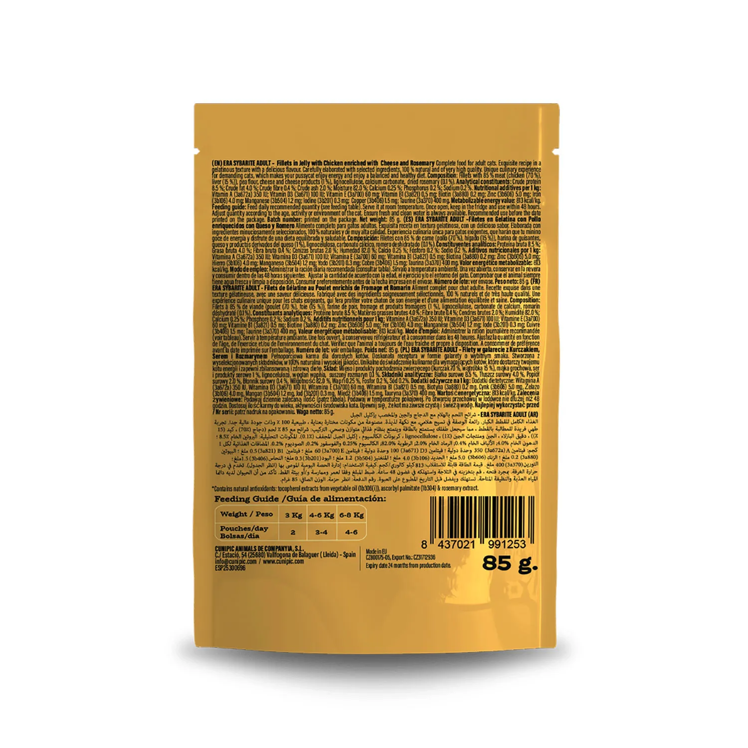 Η υγρή τροφή ERA Sybarite Adult Fillets in Jelly με κοτόπουλο, τυρί και δεντρολίβανο είναι μια πλήρης και ισορροπημένη διατροφή, ειδικά σχεδιασμένη για ενήλικες γάτες.