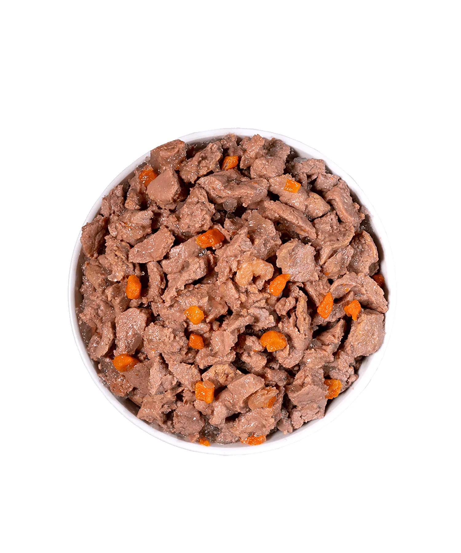 - Πλούσια σε ζωικές πρωτεΐνες: Περιέχει 85% κρέας σε φιλέτα, προσφέροντας υψηλή πεπτικότητα και βιολογική αξία. Η σύνθεση περιλαμβάνει κοτόπουλο (66%), συκώτι (15%) και πέστροφα (4%), προσφέροντας μια ποικιλία πρωτεϊνών.