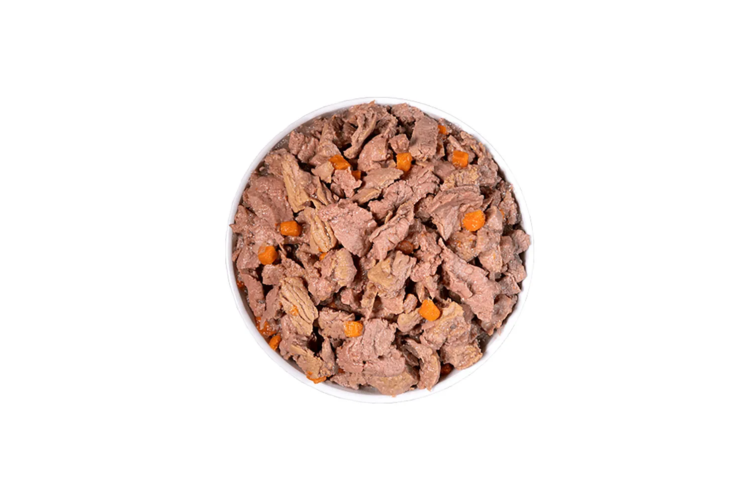 - Πλούσια σε ζωικές πρωτεΐνες: Περιέχει 85% κρέας σε φιλέτα, προσφέροντας υψηλή πεπτικότητα και βιολογική αξία. Η σύνθεση περιλαμβάνει κοτόπουλο (66%), συκώτι (15%) και σολομό (4%).