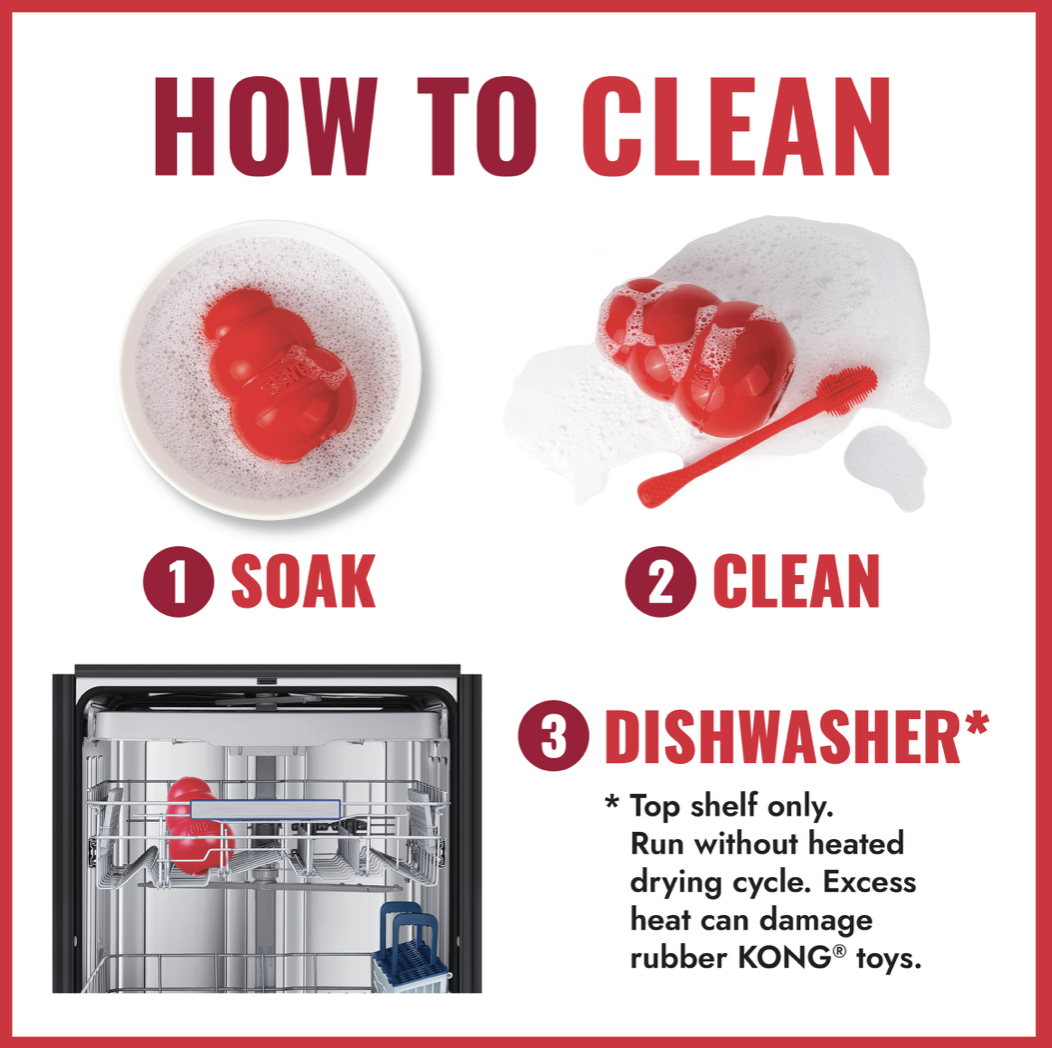 - Κατάψυξη: Παγώστε το γεμισμένο KONG για 4-6 ώρες για να αυξήσετε τη δυσκολία και να προσφέρετε δροσιά το καλοκαίρι.