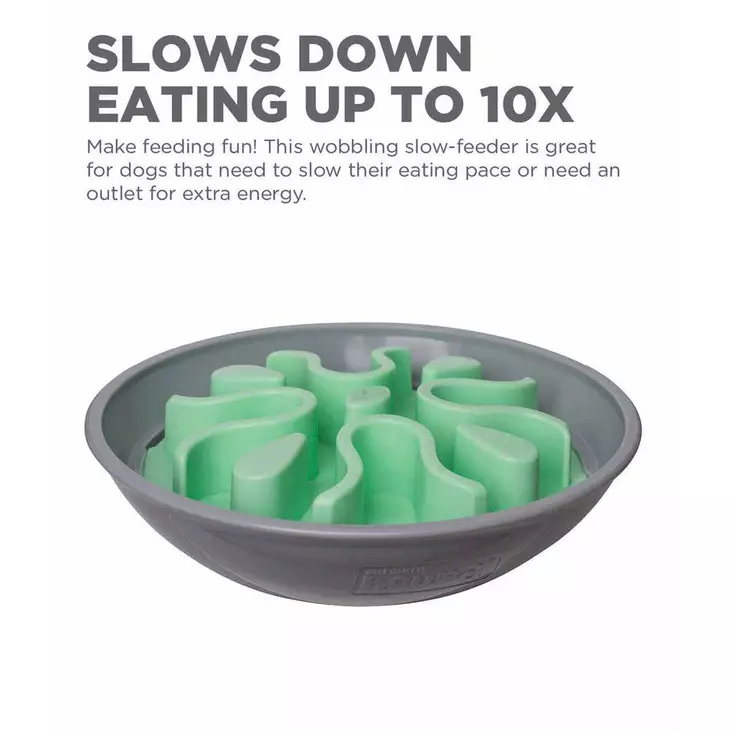 Το Outward Hound Fun Feeder Wobble Slo Bowl σε χρώμα Mint (μέντα) είναι ένα διαδραστικό, κινούμενο μπολ αργής σίτισης, σχεδιασμένο να επιβραδύνει την ταχύτητα του γεύματος του σκύλου σας έως και 10 φορές.