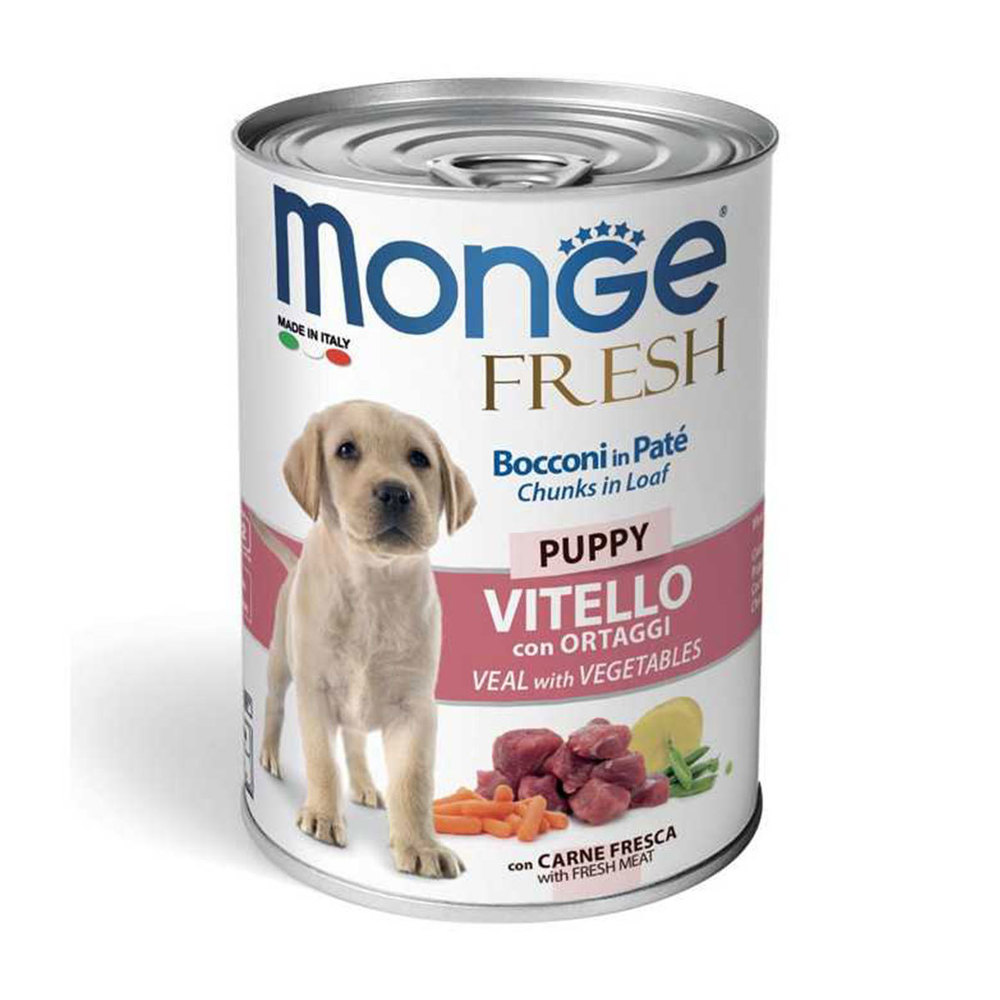 Η Monge Fresh Puppy υγρή τροφή σκύλου με μοσχάρι και λαχανικά είναι μια πλήρης, ισορροπημένη τροφή σχεδιασμένη ειδικά για κουτάβια, που εγγυάται υψηλή βιολογική αξία λόγω της χρήσης φρέσκου κρέατος.