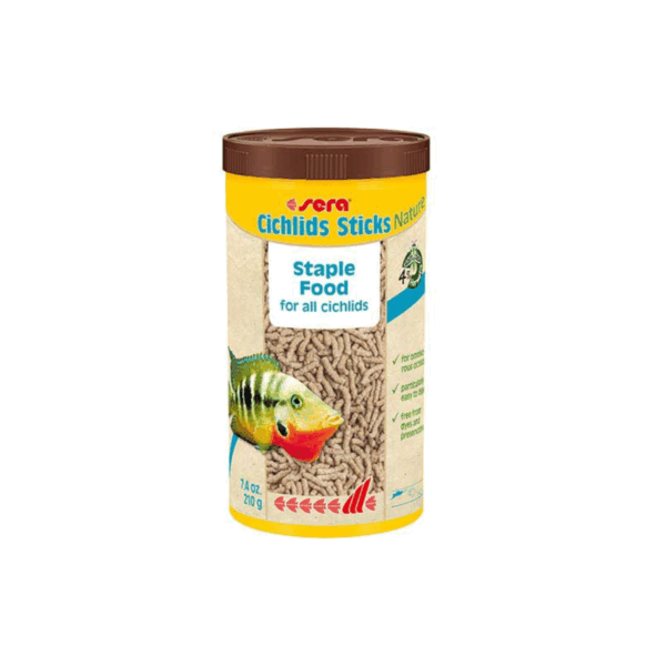 Το Sera Cichlids Sticks Nature είναι η βασική τροφή για μεγάλες παμφάγες κιχλίδες (όπως πολλά είδη της Νότιας Αμερικής) και άλλα μεγάλα ψάρια. Ως μέρος της σειράς “Nature”, δεν περιέχει χρωστικές ουσίες ή συντηρητικά.