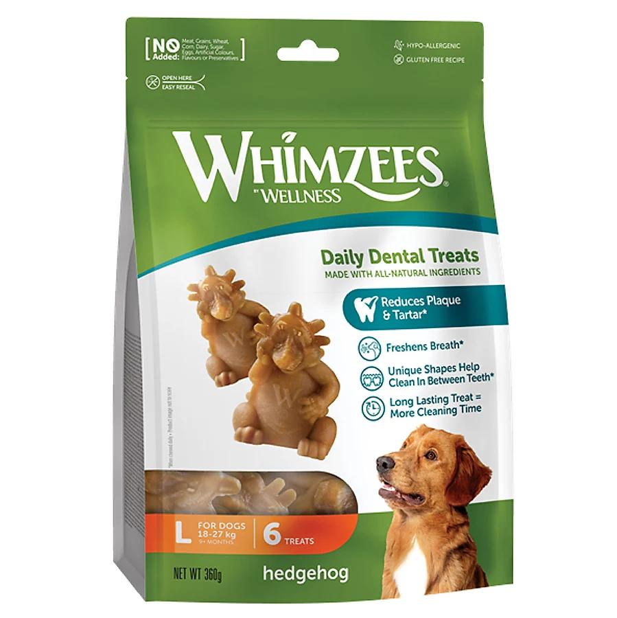 Οι Whimzees Natural Dental Hedgehog Treats (Οδοντικές Λιχουδιές Σκύλου “Σκαντζόχοιρος”) είναι 100% φυσικές, φυτικές λιχουδιές, ειδικά σχεδιασμένες για την καθημερινή και αποτελεσματική οδοντική υγιεινή του σκύλου σας.