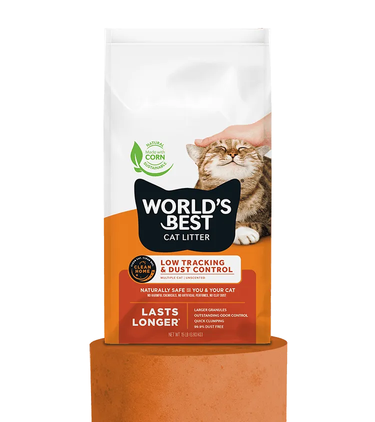 Η World’s Best Cat Litter Low Tracking & Dust Control είναι μια φυσική, συγκολλητική άμμος γάτας, φτιαγμένη από 100% καλαμπόκι ολικής άλεσης. Σχεδιάστηκε με μεγαλύτερους κόκκους για να μειώνει την εξάπλωση της άμμου στο σπίτι και να ελαχιστοποιεί τη σκόνη. Είναι άοσμη και ιδανική για νοικοκυριά με πολλές γάτες ή για γάτες με αναπνευστικά προβλήματα.